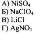 Пример 49. Установите соответствие между формулой соли и продуктом, который образуется на инертном аноде при электролизе её водного раствора.