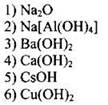 Воспользовавшись данным определением и таблицей растворимости, определяем, что Си(ОН)2 является нерастворимым основанием, а основания Ва(ОН)2, Са(ОН)2 и CsOH в воде растворимы.