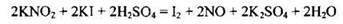 Следовательно, остаток после прокаливания нитрата калия представляет собой нитрит калия - соль с явно выраженными окислительными свойствами. Иодид-ионы в кислой среде легко окисляются нитрит-ионами до свободного иода: