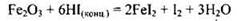 Красно-коричневый порошок представляет собой оксид железа(III), который, растворяясь в иодоводородной кислоте, восстанавливается вновь до железа(+2), а иодид-ионы окисляются при этом до элементарного иода:
