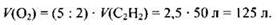 Пример 14. Объем (н. у.) кислорода, необходимый для полного сгорания 50 л (н. у.) ацетилена, равен