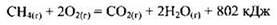 означает, что при горении 1 моль метана (СН4) образуется 1 моль оксида углерода(IV) (СO2), 2 моль воды (Н2O) и при этом выделяется 802 кДж теплоты.