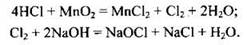 Пример 20. Сколько литров хлора (н.у.) выделится, если к 200 мл 35%-ной соляной кислоты (плотностью 1,17 г/мл) добавить при нагревании 26,1 г оксида марганца(IV)? Сколько граммов гидроксида натрия в холодном растворе прореагирует с этим количеством хлора? В ответе запишите уравнения реакций, которые указаны в условии задачи, и приведите все необходимые вычисления.