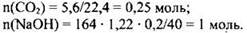 Пример 21. Углекислый газ объёмом 5,6 л (н.у.) пропустили через 164 мл 20%-ного раствора гидроксида натрия (ρ = 1,22 г/мл). Определите состав и массовые доли веществ в полученном растворе.