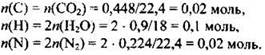 Пример 23. При сгорании 0,31 г газообразного органического вещества выделилось 0,224 л углекислого газа, 0,45 г воды и 0,112 л азота. Плотность вещества 1,384 г/мл. Установите молекулярную формулу этого соединения и назовите его.