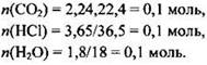 Находим количества веществ углекислого газа и воды: