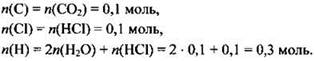 Зная количества веществ, образовавшихся при сгорании, можно рассчитать количества веществ атомов углерода, хлора и водорода в исходном соединении: