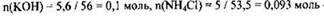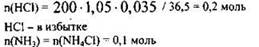 2) Рассчитаны количество вещества щёлочи и хлорида аммония, и сделан вывод об избытке щёлочи: