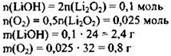 1) Составлено уравнение реакции пероксида лития с водой, и рассчитано количество вещества пероксида лития: