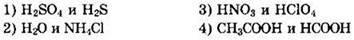 Решение 6. Определяем силу перечисленных в задании электролитов: H2SO4 — сильный, H2S — слабый; Н2O — слабый, NH4Cl — сильный; HNO3 — сильный, НСlO4 — сильный; СН3СООН — слабый, НСООН — слабый.