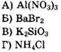 А) нитрат лития Б) силикат калия В) бромид алюминия Г) иодид калия |