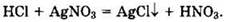 Решение 2. Кислоты, которые являются сильными электролитами, взаимодействуют с растворимыми солями в том случае, если в ходе реакции образуется осадок или слабый электролит. В противном случае взаимодействие между ионами не происходит и реакция не идет. В задании соляная кислота не реагирует с нитратами натрия, алюминия и меди, поскольку не образуются осадки или слабые электролиты. Реакция соляной кислоты с нитратом серебра идет: ![]()