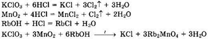 25. Даны вещества: гидроксид рубидия, соляная кислота (конц.), диоксид марганца, хлорат калия. Напишите уравнения четырех возможных реакций между этими веществами.