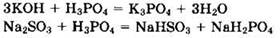 диссоциируют ступенчато. Видно, что только первая ступень диссоциации Н3РO4 больше, чем вторая ступень диссоциации H2SO3, поэтому процесс идет только до NaH2PO4. Однако первая ступень диссоциации Н3РО4 меньше, чем первая ступень диссоциации H2SO3, поэтому образуется NaHSO3.