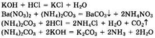 34. Даны водные растворы: хлороводородной кислоты, нитрата бария, карбоната аммония, гидроксида натрия. Напишите уравнения четырех возможных реакций между этими веществами.