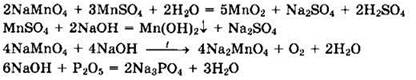 37. Даны вещества: сульфат марганца(II), перманганат натрия, гидроксид натрия и оксид фосфора(V). Напишите уравнения четырех возможных реакций между этими веществами.