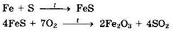 38. Железные стружки смешали с серой и прокалили. Полученное вещество подвергли обжигу, то есть нагревали в присутствии избытка кислорода. Образовавшееся твердое вещество растворили в соляной кислоте. К полученному раствору добавили избыток раствора гидроксида натрия. Напишите уравнения четырех перечисленных реакций.