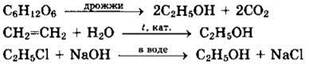 Решение 6. Этанол можно получить в одну стадию из глюкозы, этилена и хлорэтана: