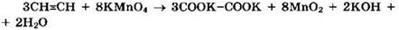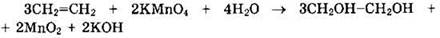 При пропускании этилена в раствор перманганата калия при низких температурах образуется этиленгликоль (этандиол-1,2):