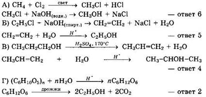 1) этилен 2) диэтиловый эфир 3) этилацетат 4) этилат натрия 5) хлорэтан 6) реакция не идет |