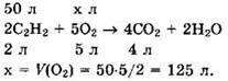 1. Определите объем кислорода (н.у.), необходимого для полного сгорания 50 л (н.у.) С2Н2.