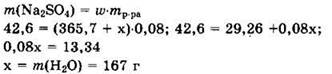 Пусть к этому раствору добавили х г воды, тогда mр-ра = (365,7 + х) г, а масса вещества останется прежней m(Na2SO4) = 42,6 г. Для этого раствора w = 0,08. Отсюда имеем: