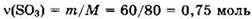 Из уравнения видно, что v(H2SO4) = v(SO3) = 0,75 моль.