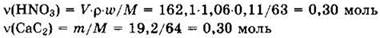 Из уравнения (1) видно, что с 0,3 моль HNO3 прореагирует 0,15 моль СаС2.