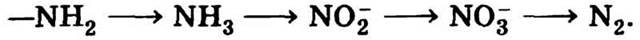 Если для облегчения понимания принять, что в органических соединениях азот находится только в составе аминогрупп — NH2, то схема его превращения будет выглядеть следующим образом: