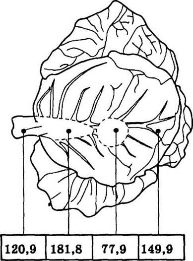 В капусте наибольшее количество нитратов сосредоточено в верхних кроющих листьях и кочерыжке