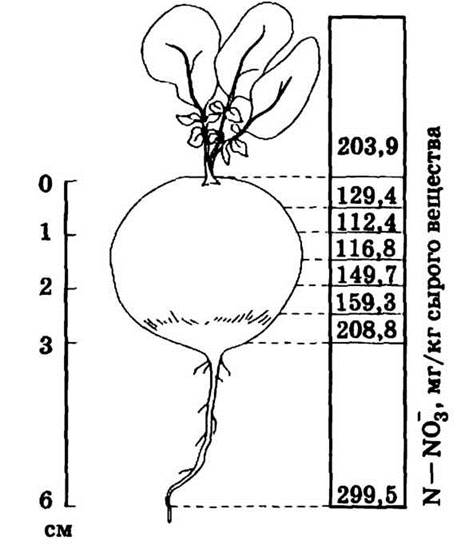 Накопление нитратов в различных частях продуктивных органов растений - Приложения