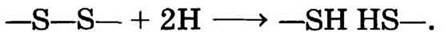 Освобождающийся водород присоединяется по дисульфидным мостикам кератина, разрывая связь S—S: