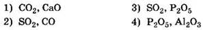 Таким образом, первый вариант ответа не подходит. Точно так же откажемся и от второго варианта ответа — если SO2 относится к кислотным оксидам, то СО — к безразличным. В четвертом варианте приводятся оксиды фосфора (кислотный) и алюминия (амфотерный). И только в третьем варианте оба оксида — и SO2 и Р2O5 — кислотные.
