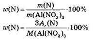 Решение. Запишем химическую формулу нитрата алюминия: Al(NO3)3. Массовой долей элемента в соединении называют отношение массы, приходящейся на данный элемент, к массе всего взятого вещества. Применительно к расчетным задачам массовая доля элемента равна отношению атомной массы данного элемента (с учетом числа его атомов в молекуле) к молекулярной массе соединения: