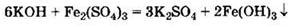 В реакции с солью образуется нерастворимый осадок: Fe(OH)3— гидроксид железа(III) и растворимая соль сульфат калия K2SO4. Это реакция обмена между щёлочью и растворимой солью.