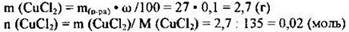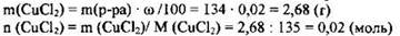 2) Рассчитана масса и количество вещества хлорида меди(II), содержащегося в растворе: