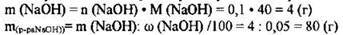 2) Рассчитана масса и количество вещества гидроксида натрия, содержащегося в растворе: