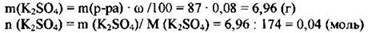 2) Рассчитана масса и количество вещества сульфата калия, содержащегося в растворе: