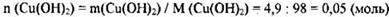 2) Рассчитано количество вещества гидроксида меди(II), выпавшего в осадок и нитрата меди(II):