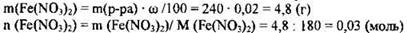 2) Рассчитана масса и количество вещества нитрата железа(II), содержащегося в растворе: