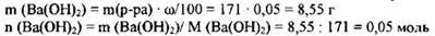 2) Рассчитана масса и количество вещества гидроксида бария, содержащегося в растворе:
