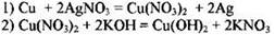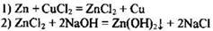 4) для второй реакции: выделение красного осадка металлической меди и изменение цвета раствора (исчезновение голубой окраски раствора);