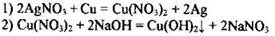 375. Для проведения эксперимента предложены следующие реактивы: AgNO3, ZnSO4, Си, NaOH, раствор H2SO4. Используя воду и необходимые вещества только из этого списка, получите в две стадии гидроксид меди(II). Напишите уравнения реакций. Опишите признаки проводимых реакций. Для второй реакции напишите сокращённое ионное уравнение реакции.