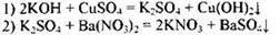 373. Для проведения эксперимента предложены следующие реактивы: Ba(NO3)2, CuSO4, КСl, КОН, Na2SO4. Используя воду и необходимые вещества только из этого списка, получите в две стадии нитрат калия. Напишите уравнения реакций. Опишите признаки проводимых реакций. Для второй реакции напишите сокращённое ионное уравнение реакции.