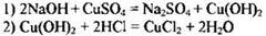 3) для первой реакции: выделение красного осадка и изменение цвета раствора (исчезновение голубой окраски раствора);