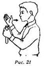 Не пробуйте вещества на вкус. Знакомьтесь с запахом веществ осторожно, лёгким движением руки направляя воздух от сосуда к носу (рис. 21).