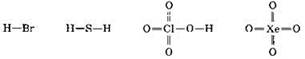 Ранее валентность определяли как число атомов одновалентного элемента, с которым соединяется один атом данного элемента. Так, водород считается типичным одновалентным элементом. В молекуле бромоводорода НВr атом брома соединяется с одним атомом водорода, а атом серы в молекуле сероводорода H2S — с двумя атомами водорода. Следовательно, бром в НВrодновалентен, а сера в H2S — двухвалентна. Значения валентности для различных элементов могут изменяться от одного до восьми. Так, в хлорной кислоте НСlO4 элемент водород — одновалентный, кислород — двухвалентный, хлор — семивалентный. В молекуле оксида ксенона ХеO4 валентность ксенона достигает значения восемь. Всё это наглядно демонстрируют следующие структурные формулы, в которых показан порядок связи атомов в молекуле друг с другом в соответствии с их валентностями (причём каждой единице валентности отвечает один валентный штрих):
