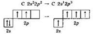 Однако наиболее многочисленны и устойчивы соединения углерода, в которых его валентность равна IV. Для образования четырёх ковалентных связей атом углерода переходит из основного в возбуждённое состояние, характеризующееся наличием четырёх неспаренных электронов: