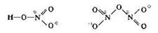 За счёт трёх неспаренных р-электронов атом азота может образовать максимально три ковалентные связи по механизму обобществления электронов. Ещё одну связь, четвёртую, атом азота может образовать по донорно-акцепторному механизму за счёт неподелённой 2s-электронной пары (являясь донором её). Поскольку во втором энергетическом (квантовом) слое нет вакантных орбиталей, то атом азота не может распарить 2s2-электронную пару и повысить свои валентные возможности. Таким образом, атом азота может проявлять валентности I, II, III и IV, но не V! Азот не может быть пятивалентным! Даже в азотной кислоте и своём высшем оксиде атом азота образует только 4 ковалентные связи, являясь четырёхвалентным, что видно из следующих формул: