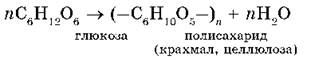 1) реакции гомополиконденсации, если полимер образуется из молекул одного мономера. Например, из молекул моносахаридов (глюкозы) в клетках растений образуются полисахариды: